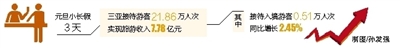小長假期間,三亞天氣晴好。在第二屆三亞國際音樂節等大型活動的帶動下,三亞海棠灣旅游飯店客房入住率88.92%,多項旅游數據領跑三亞主要旅游度假區。亞龍灣、三亞灣、大東海等傳統旅游度假區人氣也頗旺。其中,亞龍灣旅游飯店客房入住率88.29%,三亞灣旅游飯店客房入住率86.10%,大東海旅游飯店客房入住率87.84%。三亞全域旅游發展初見成效。