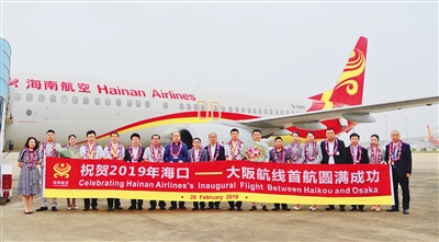 本報???月28日訊 (記者趙優 鄧海寧)2月28日上午,前往日本關西國際機場的海南航空波音737-800客機從海口美蘭國際機場起飛,海口?大阪直飛航線正式開通,標志著中斷十多年的瓊日直飛航線重新啟航,我省實現了周邊重要客源市場航線全覆蓋。據了解,這也是我省今年以來新開的第6條境外航線。