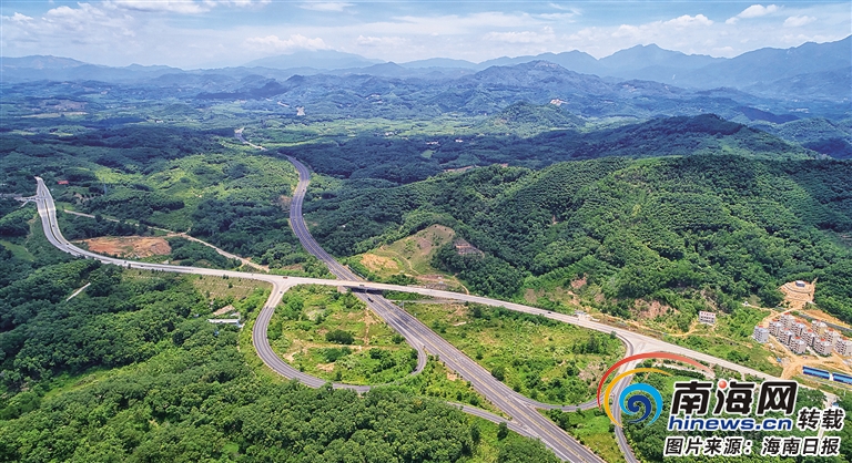 7月12日,俯瞰瓊樂高速與G224國道交界路段,嶄新的互通進(jìn)出口連接瓊中黎族苗族自治縣。