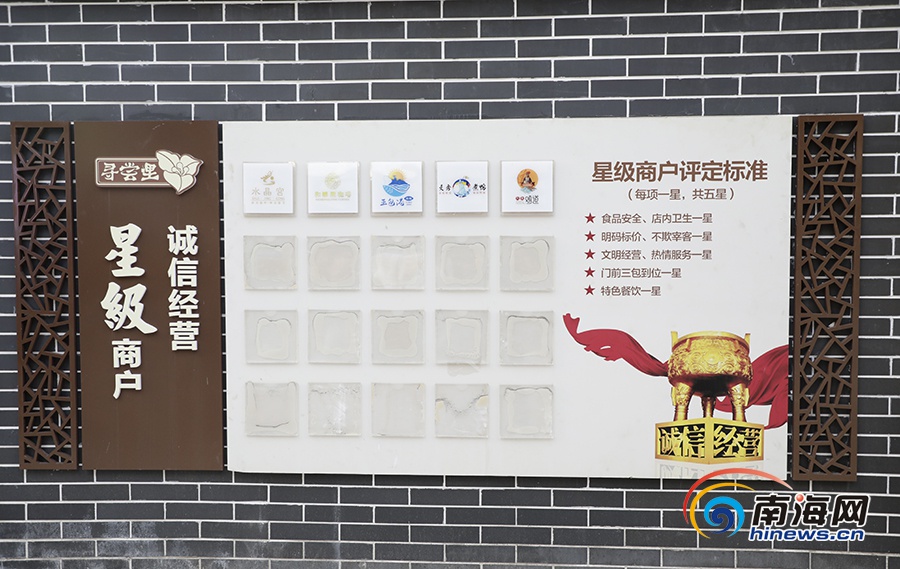 尋嘗里美食城誠信廣場“星級信用經營商戶”評比墻。南海網記者 李昊 攝
