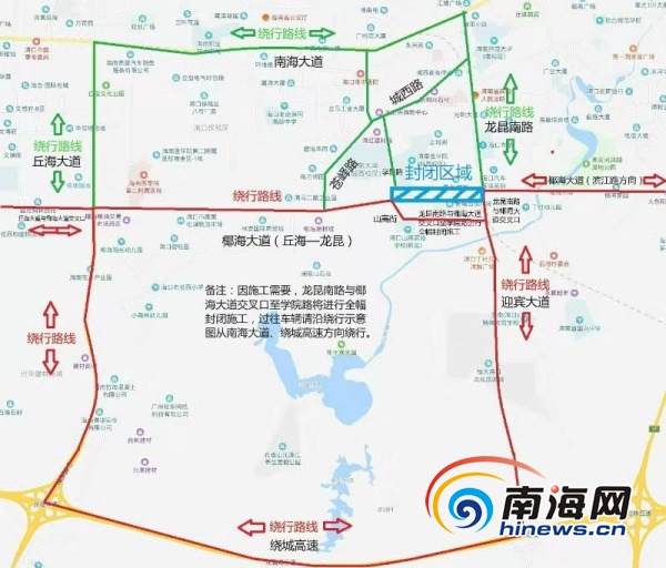 椰海大道與丘海大道交叉口封閉施工計劃為:9月24日21時30分至25日7時、9月26日21時30分至27日7時封閉交叉口東側(cè)半幅,屆時將影響椰海大道東西向及丘海大道南往北(即入城)方向通行;9月25日21時30分至26日7時、9月27日21時30分至28日7時封閉交叉口西側(cè)半幅,屆時將影響椰海大道東西向及丘海大道北往南(即出城)方向通行。