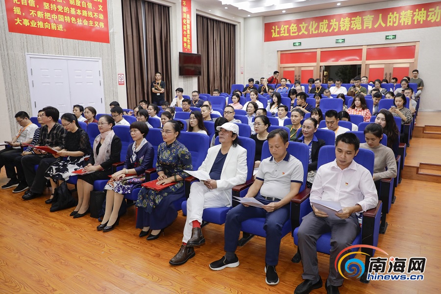 在報告廳,書友們認真聆聽關于初心和使命的故事。書友會共分三個篇章,在第一篇章《初心》中,微黨課視頻《海南島第一面五星紅旗如何升起》通過尋訪當年升旗儀式的瓊崖革命老戰士、黨史專家等人,共同講述了海南島升起的第一面五星紅旗背后的故事。五指山市委宣傳部常務副部長符厚剛說,“這次讀書會意義重大,希望通過采訪團的鏡頭和文字,將海南島第一面五星紅旗在五指山升起的故事傳得更遠、傳得更廣。”