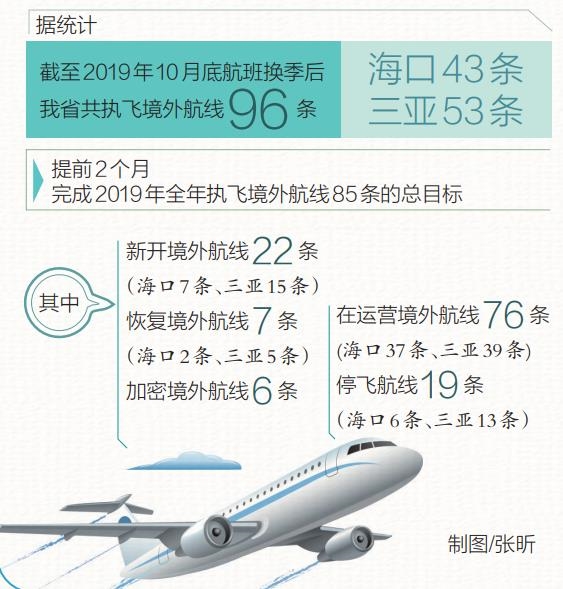 據(jù)統(tǒng)計,截至2019年10月底航班換季后我省共執(zhí)飛境外航線96條,提前2個月完成2019年全年執(zhí)飛境外航線85條的總目標(biāo)。