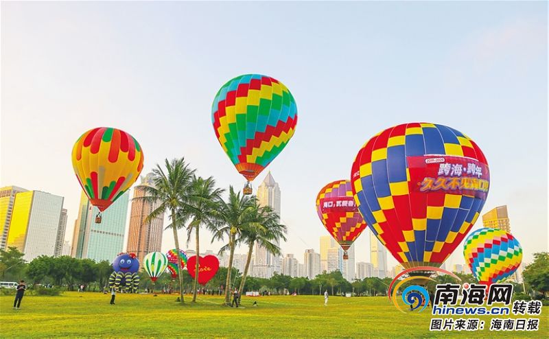 海口萬綠園熱氣球升空 為濱海景觀帶增色