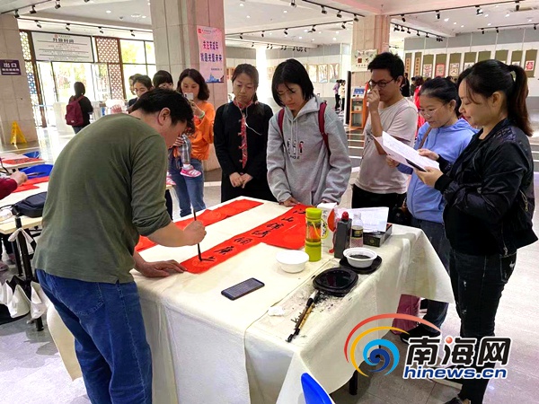 海南省圖書館在展覽期間同時舉辦“迎新年,送對聯”活動。 通訊員鄭曉菲 攝