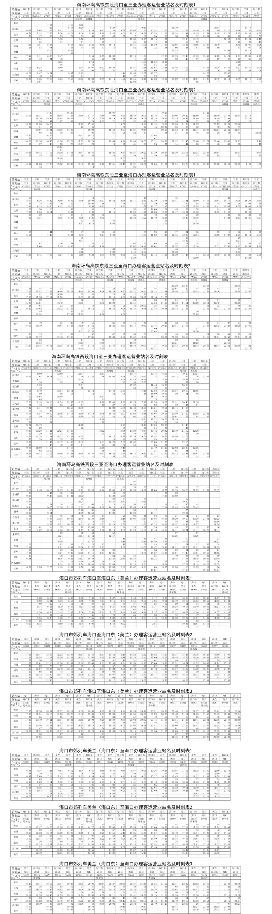 據介紹,新圖調整后海口市郊列車最高開行61對,較舊圖主要增加了8對海口至美蘭運行區段列車。市郊列車也分為日常圖和周末圖,日常圖開行50對,其中海口至海口東21.5對,海口至美蘭27.5對,海口東至美蘭1對;周末圖開行61對,其中海口至海口東開行27.5對,海口至美蘭開行32.5對,海口東至美蘭開行1對。