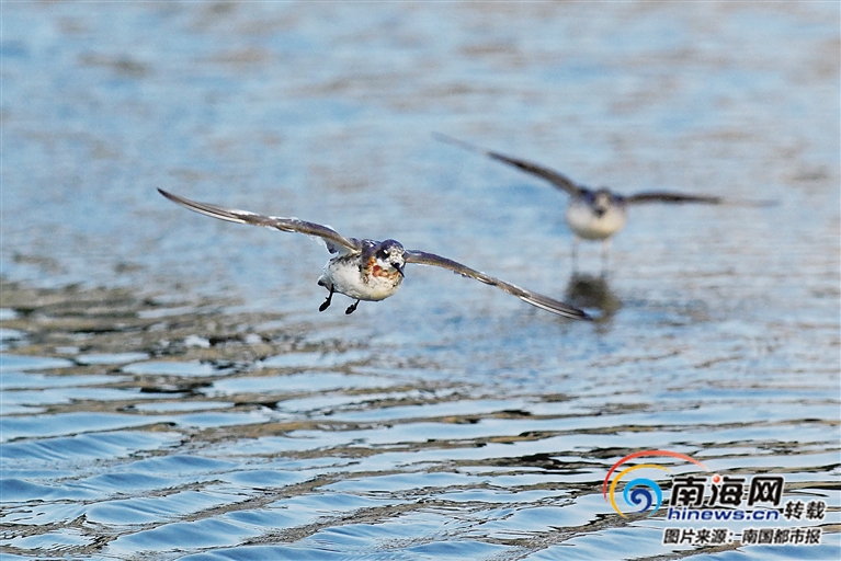 南國都市報、南海網、南海網客戶端4月13日訊(記者 陳衛東 文/圖) 4月11日,記者在海口西海岸發現20余只國家“三有保護動物”——紅頸瓣蹼鷸。它們成群結隊在海邊、沙灘、海面上覓食和嬉戲。