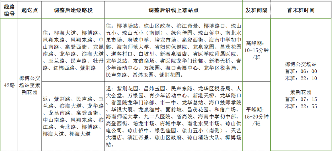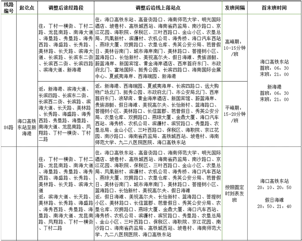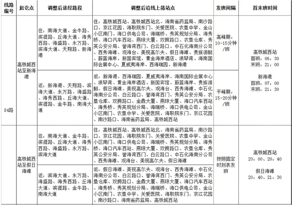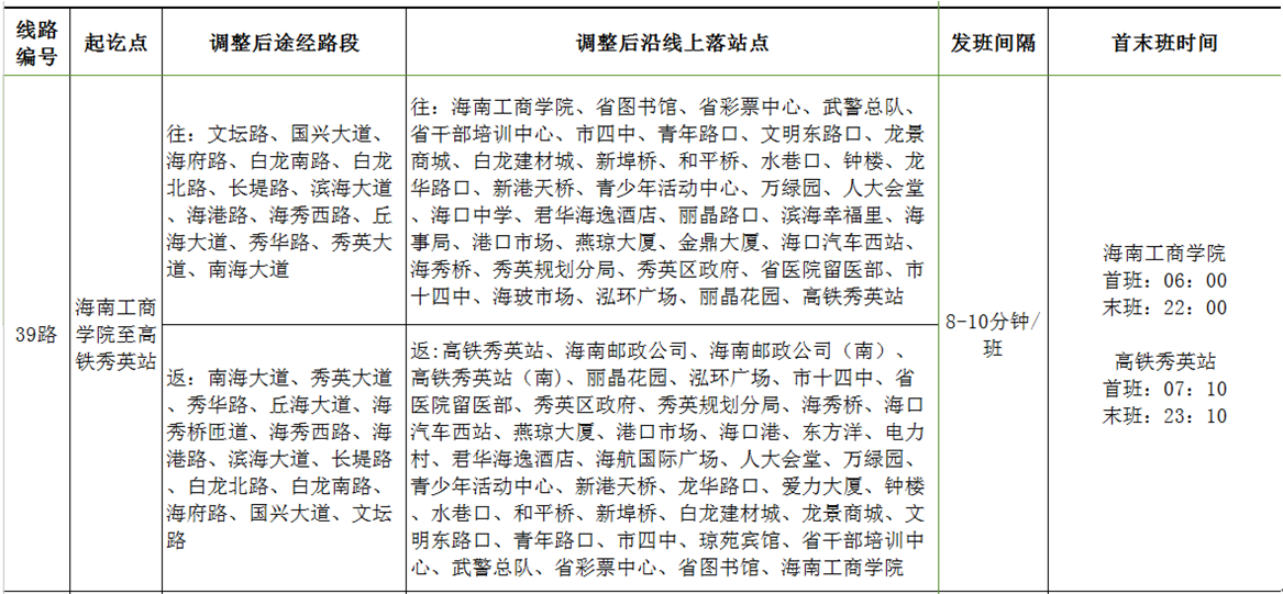 取消站點:海職院、保稅區、銘豪廣場、丘海路口、有線海南基地。