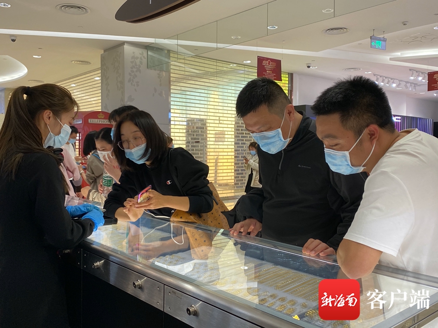 “請排隊(duì)出示健康碼。”在免稅店門口,市民游客佩戴口罩,排隊(duì)出示健康碼,入口處設(shè)置了電子體溫測量器,門口的監(jiān)視器可以清晰地看到出入口的安檢情況。正值春節(jié)前,免稅店內(nèi)醒目的“免稅品年貨街”格外醒目,手表、護(hù)膚品、首飾、化妝品……琳瑯滿目,備受消費(fèi)者歡迎的“網(wǎng)紅”單品放在顯眼處,旅客可以快速提取、購買。