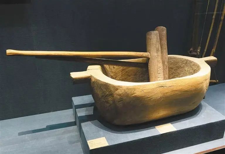 順著展館櫥窗看去,除了取火工具、泥片制陶,還能看到這些獨木器具,這些器具象征著海南島亮起了第一個農耕文明的火把。獨木器具的出現,也說明了黎族祖先可以制作和使用工具,這樁樁件件都體現著海南農業文明發展的進步,對于研究海南農業文明有著重要的歷史價值。