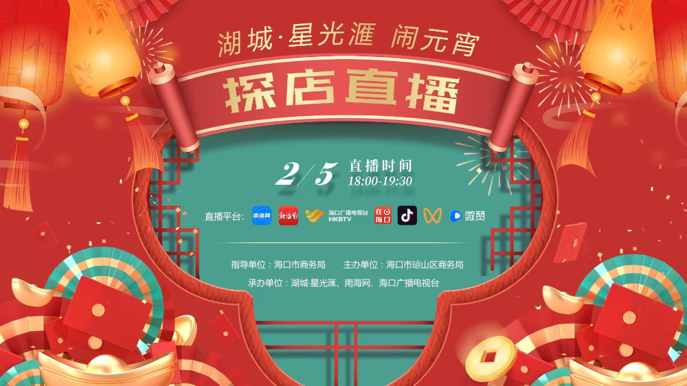 海口瓊山區5日18時開啟探店直播,南海網主持人錢嘉敏帶您逛海口湖城星光匯“鬧元宵”。