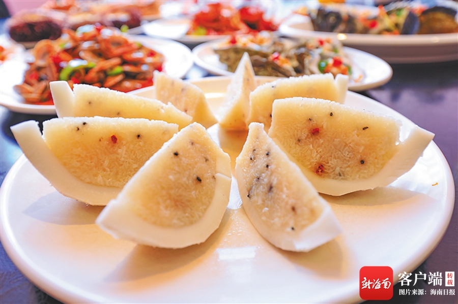 不僅在文昌,椰子的家常滋味,海南各市縣的居民都熟悉——在不少海南菜餐廳里,膚如凝脂的椰子飯細膩香甜;在海口的夜色中,一只只洗凈的乳鴿被塞進老椰子里,再加入枸杞、當歸等輔料燉成椰盅,就是養生好滋味;在三亞、陵水等地,椰絲魷魚筒、椰絲墨魚仔等傳統菜品,將海鮮和椰子融合,鮮香四溢;在瓊海的大街小巷,各類雜糧以椰絲為餡,表皮裹上一層椰蓉,吸引不少來自全國各地的“網紅”去打卡;在萬寧街頭,一塊豬腸粑里包裹的紅糖椰絲,是遠近聞名的好味道,不少當地人為了吃上一口,排長隊也樂意。